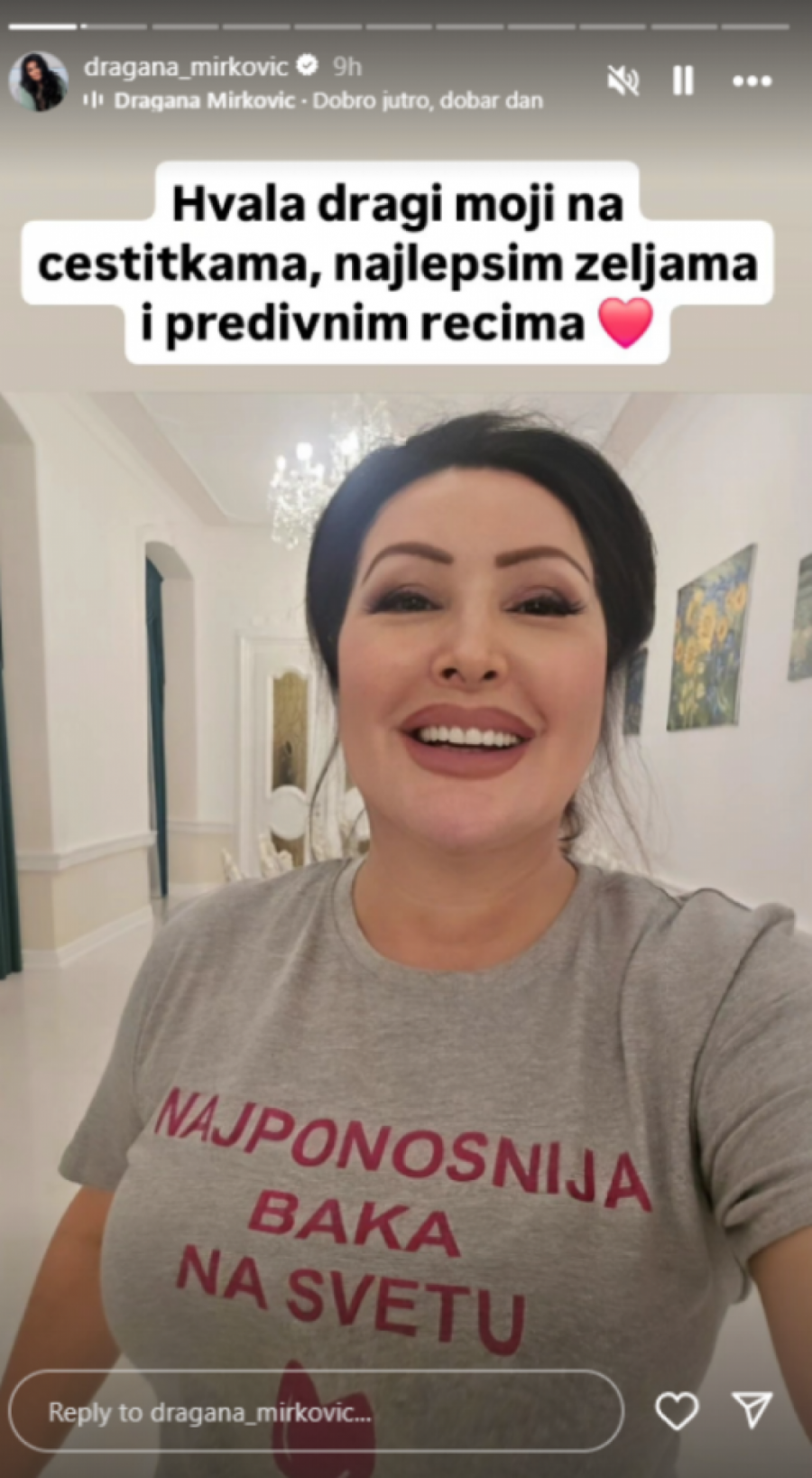 - Hvala, dragi moji, na čestitkama, najlepšim željama i predivnim rečima -poručila je Dragana putem društvenih mreža.