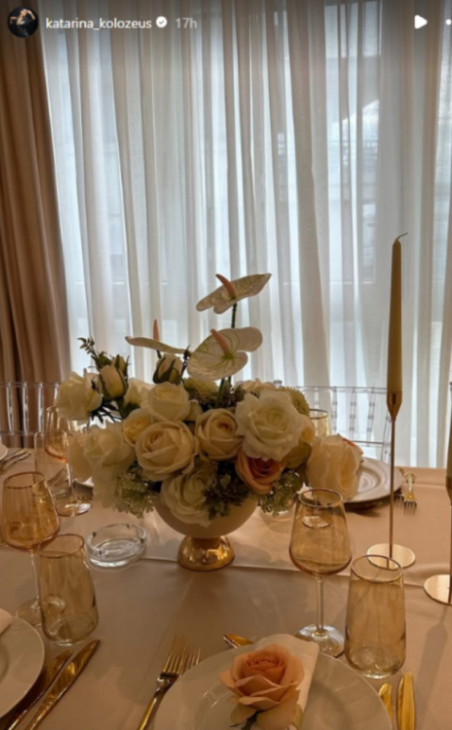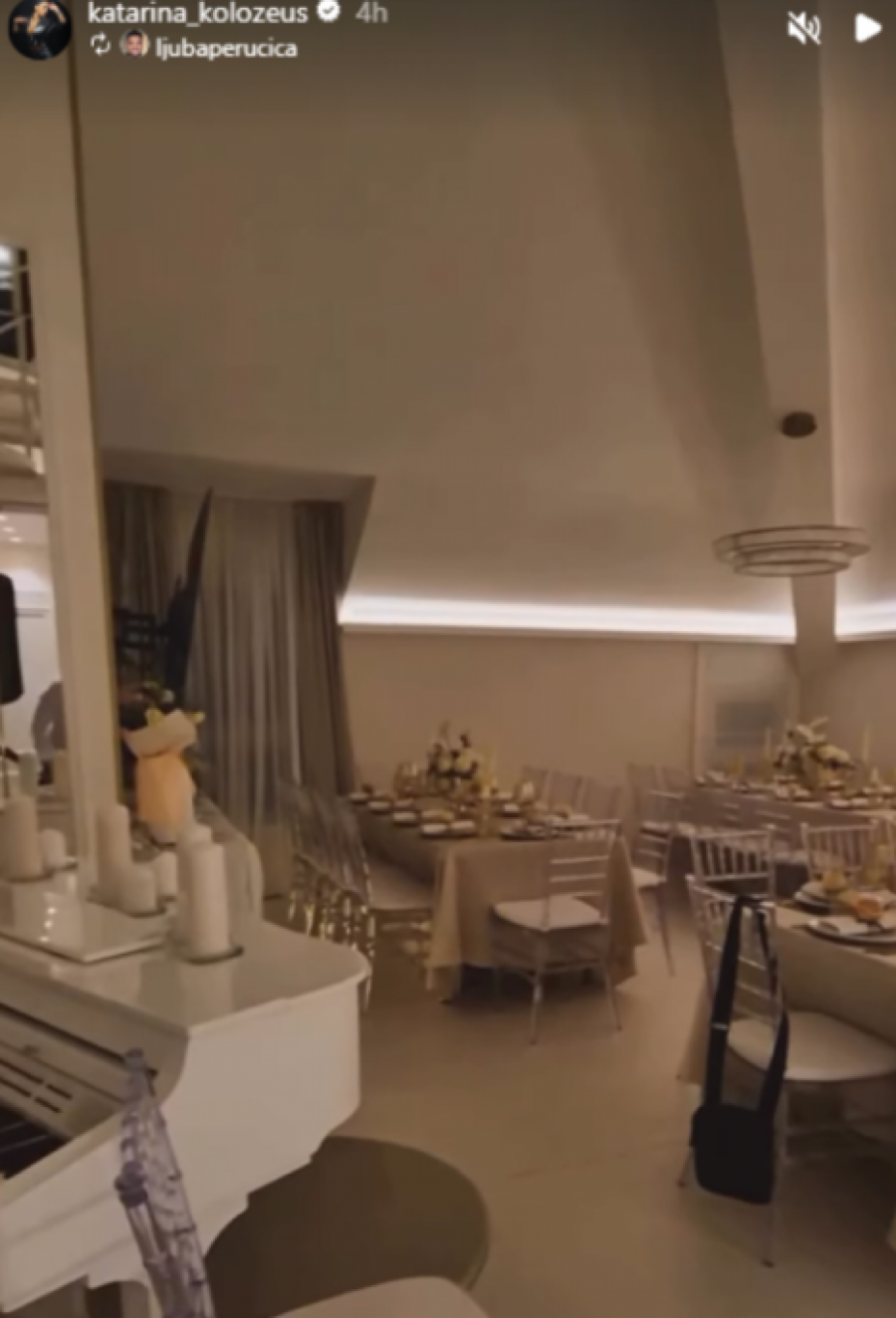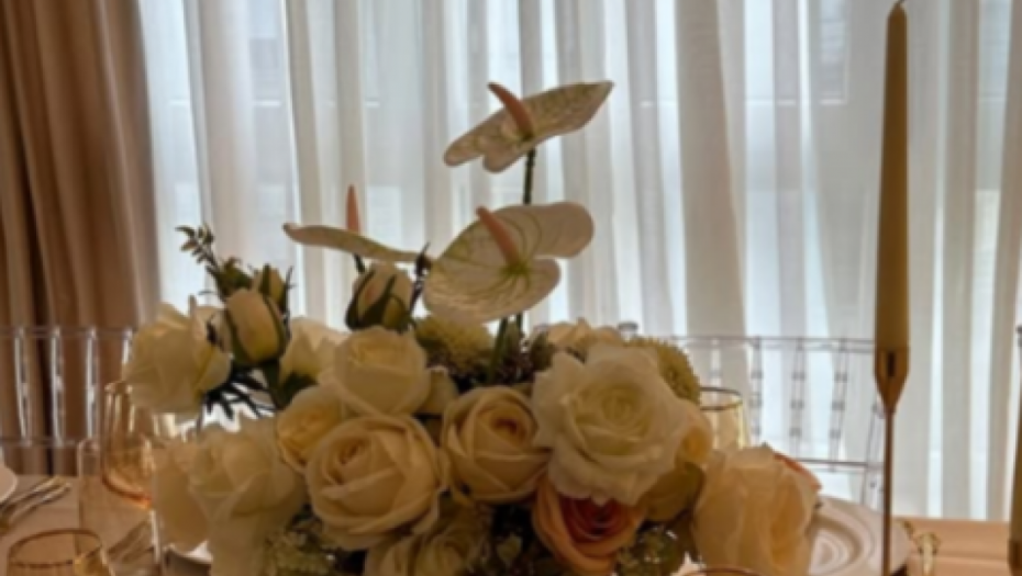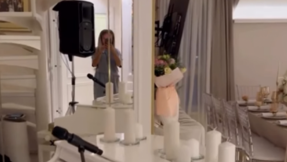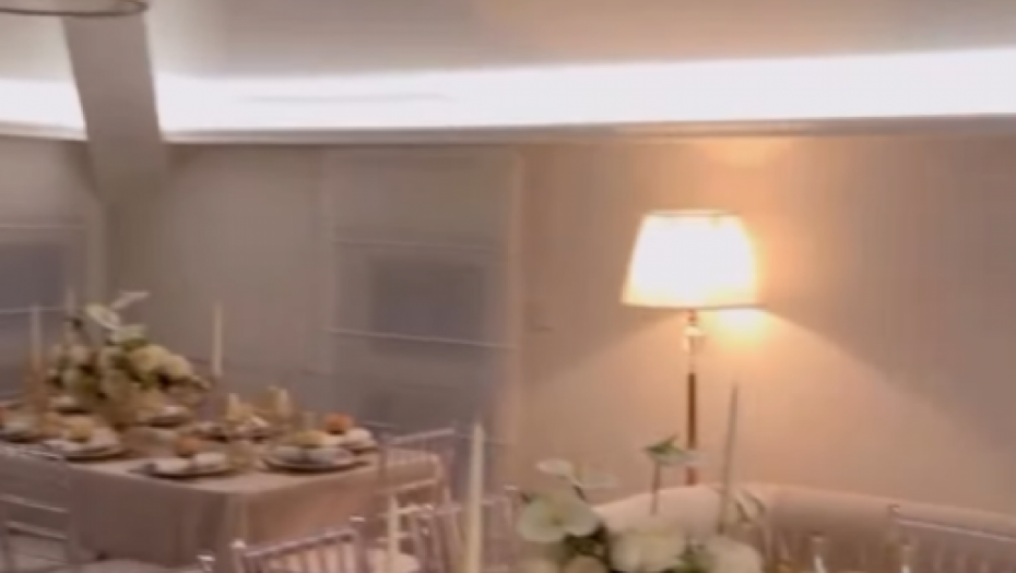 Dominirale su bež i bele nijanse, dok su sto krasile dekoracije sa svećama i raskošnim belim buketima. U središtu dnevne sobe nalazio se beli klavir, koji je doprineo toploj atmosferi večeri.