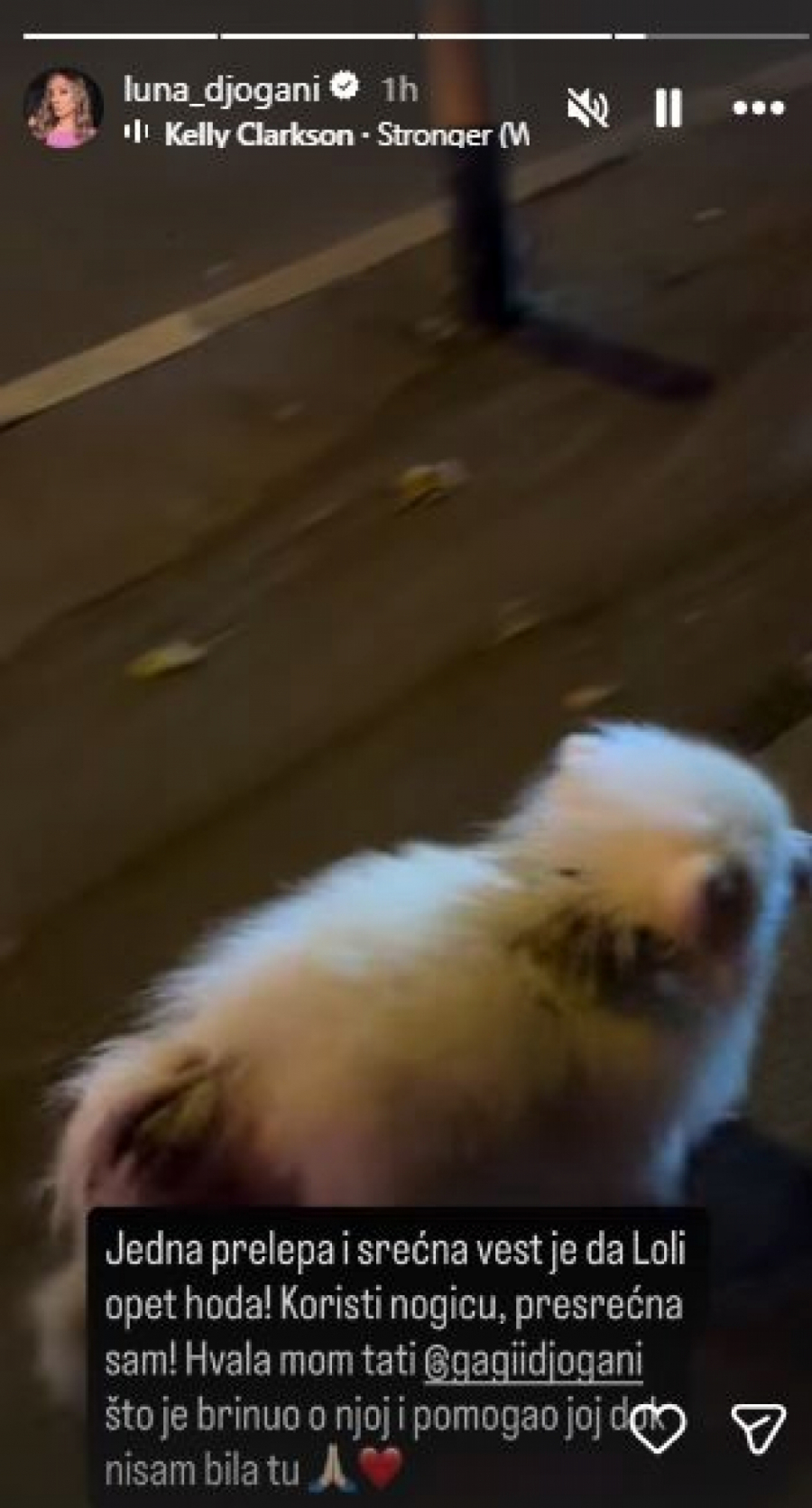 - Jedna prelepa i srećna vest je da Loli opet može da hoda. Koristi nogicu, presrećna sam. Hvala mom tati Gagiju Đoganiju, što je brinuo o njoj i pomagao joj dok nisam bila tu - napisala je Đoganijeva.