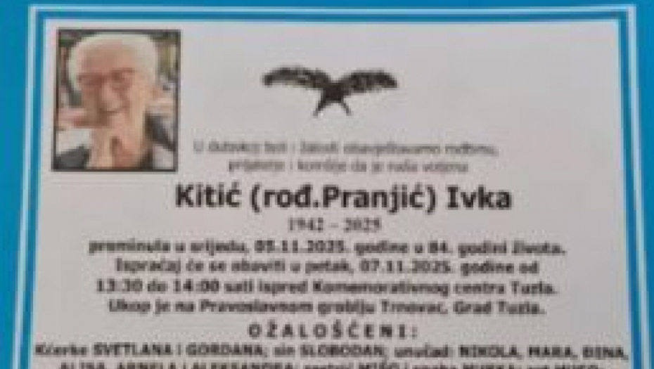 Ivka Kitić, majka proslavljene rukometašice Cece, preminula je danas u 84. godini života.