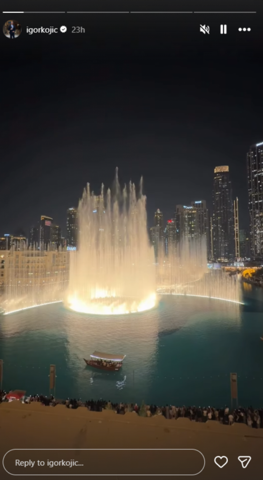 Tokom boravka, objavio je i snimke čuvene fontane i njenog spektakularnog šoua ispred Dubai Mola, kao i drugih zanimljivosti koje ovaj luksuzni grad nudi, pokazujući da uživa u svakom trenutku putovanja.