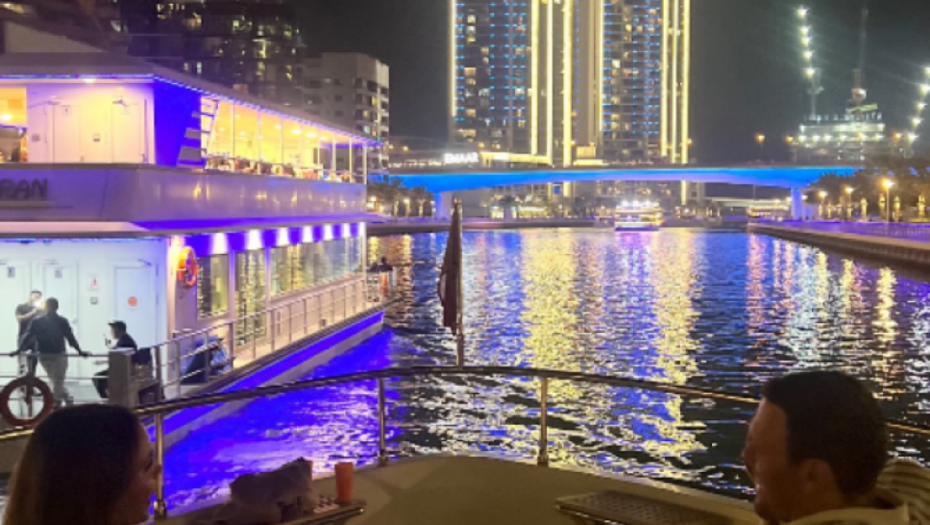 Par je pozirao na luksuznoj jahti, dok se u pozadini pružao impresivan pogled na grad.