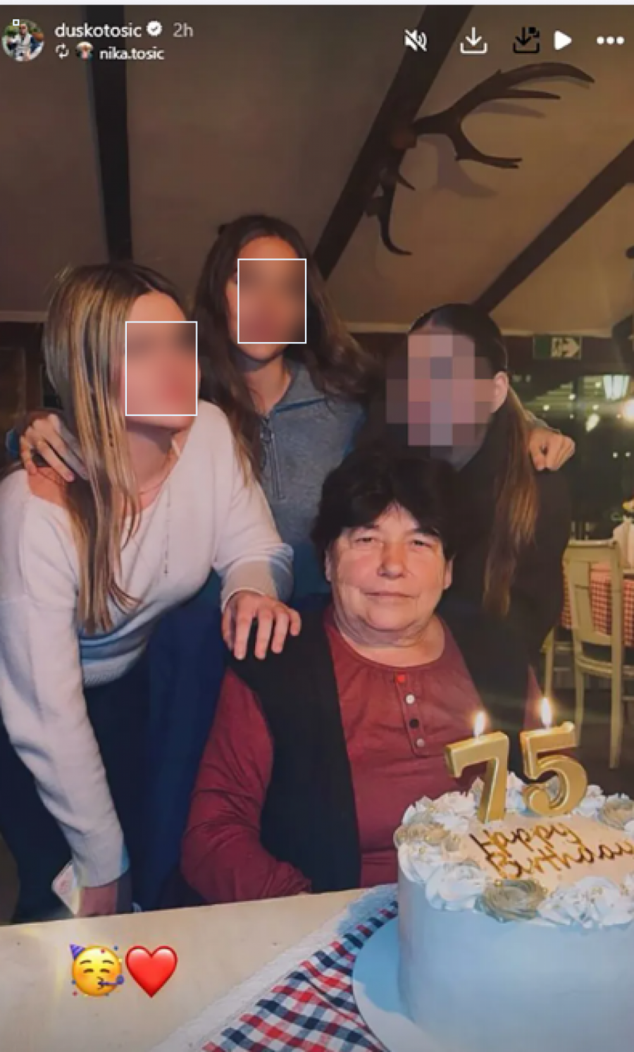 Duško Tošić, juče je imao dobar razlog za slavlje u rodnom Orlovatu. Majka nekadašnjeg fudbalera, Nikoleta, proslavila je 75. rođendan u prisustvu svojih unuka Atine i Nike, kao i ćerke Tošićeve sestre Katarine Prodanov..