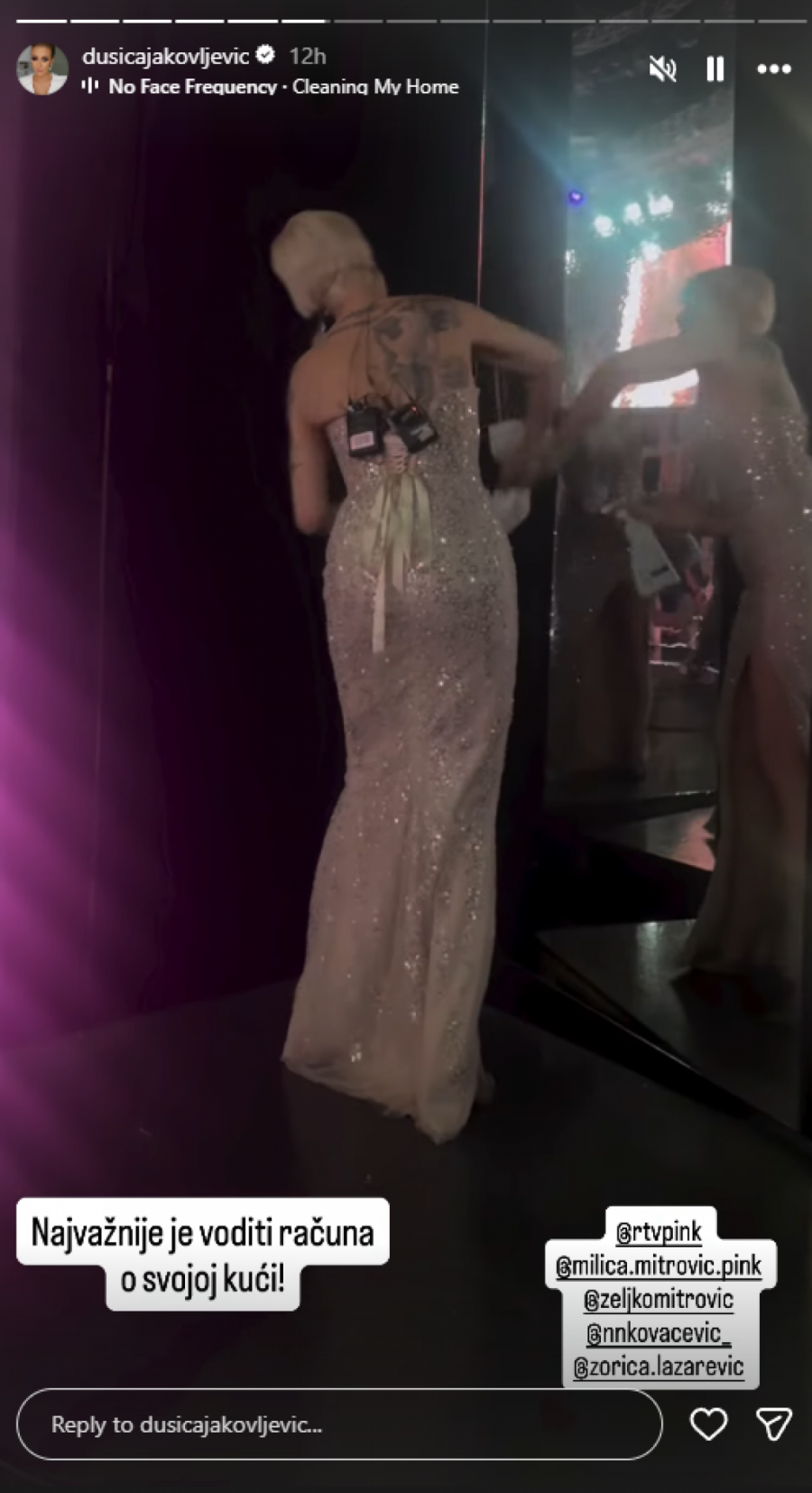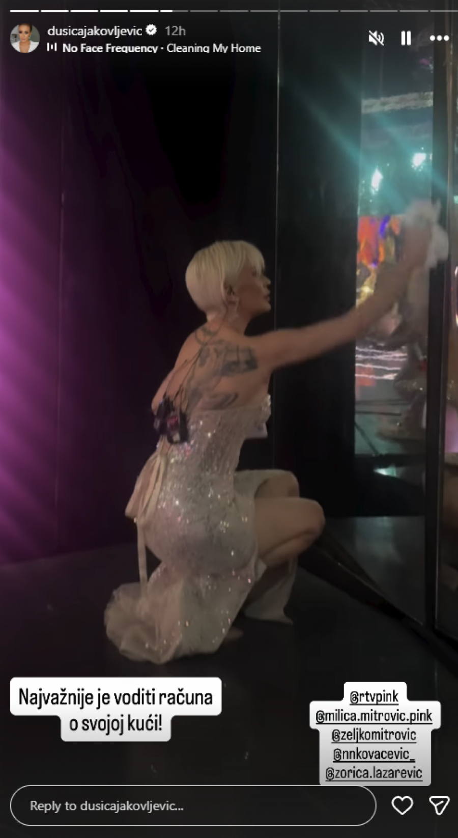 Njena akcija nije prošla ne zapaženo, pa su je kolege odmah snimile, a Dušica je snimak objavila na svom Instagramu uz poruku "Najvažnije je voditi računa o svojoj kući".