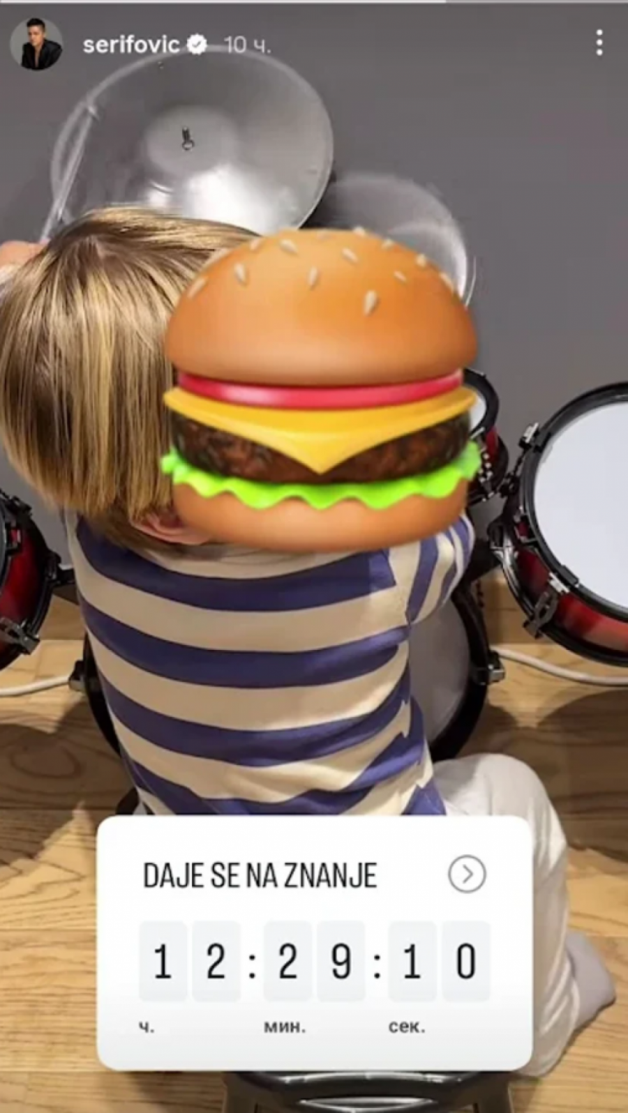 Na pomenutoj društvenoj mreži, Šerifovićeva je objavila fotografiju sina Maria koji je bio u kolicima sa rukama, koje je digao u vazduh i pozirao ispred ogromnih novogodišnjih ukrasa.