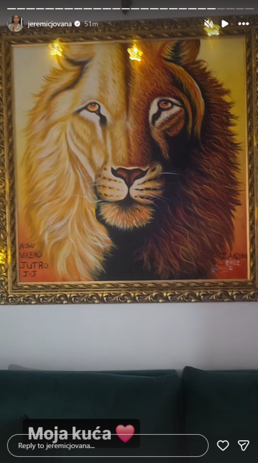 Izbor ukrasa prepustila je svojoj ćerkici Lei, a pored minijaturne jelke, na prozoru je bila okačena crvena mašna, a oko oko slike lava koju Jovana obožava, bile su okačene lampice.