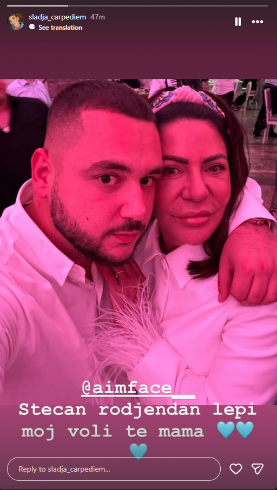 - Srećan rođendan, lepi moj. Voli te mama - napisala je Slađa uz njihovu fotografiju na kojoj poziraju zagrljeni.