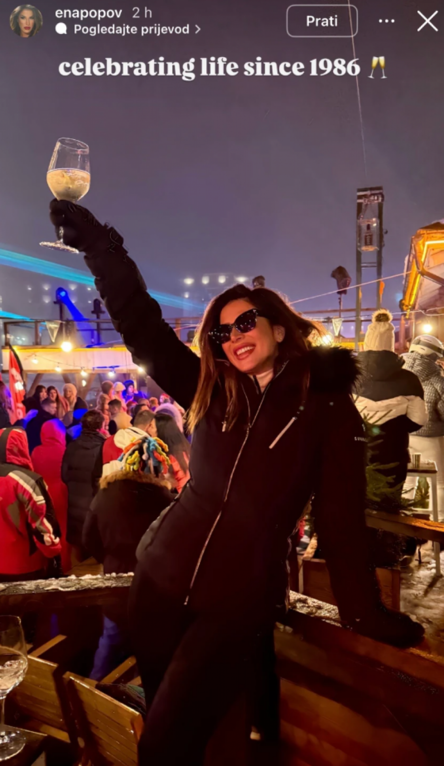Par je sa društvom uveče otišao u provod, a Ena je objaila fotografiju sa čašom vina.