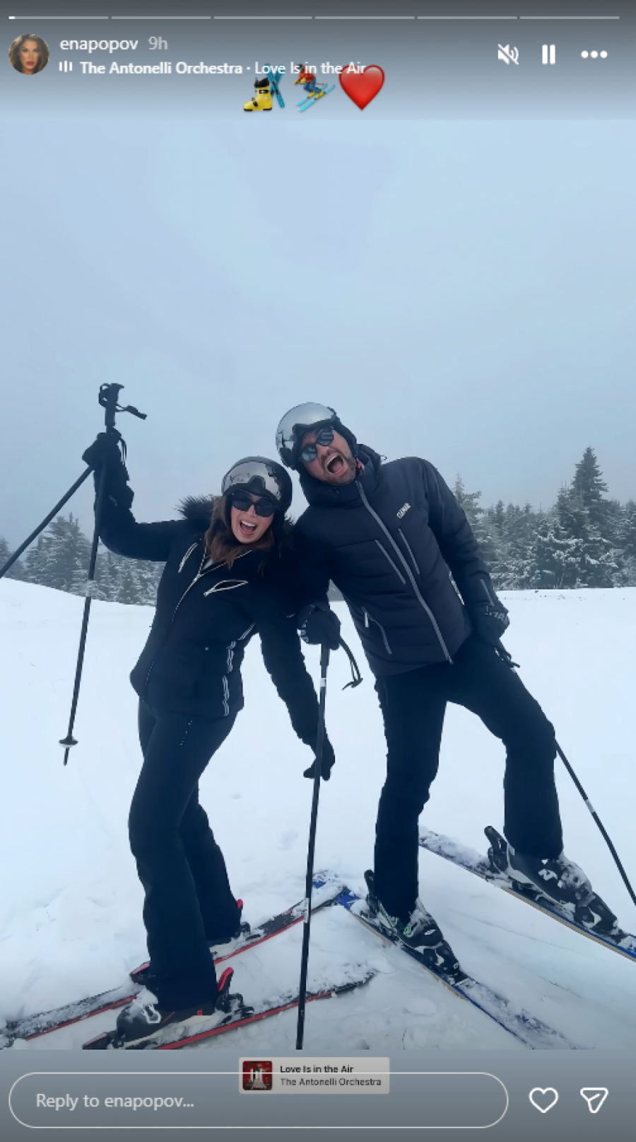 Najpre je tokom dana objavila fotografiju sa ski staze gde su ona i suprug nasmejani pozirali.