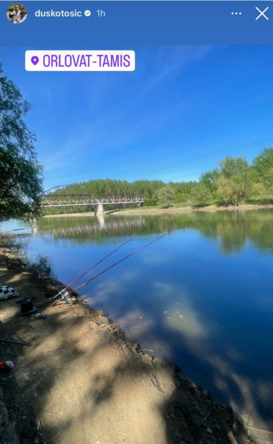 Putem Instagrama, gde se ne oglašava često, Tošić je jednom prilikom pokazao kako uživa i peca na reci Tamiš, a oko njega je bila netaknuta priroda.
