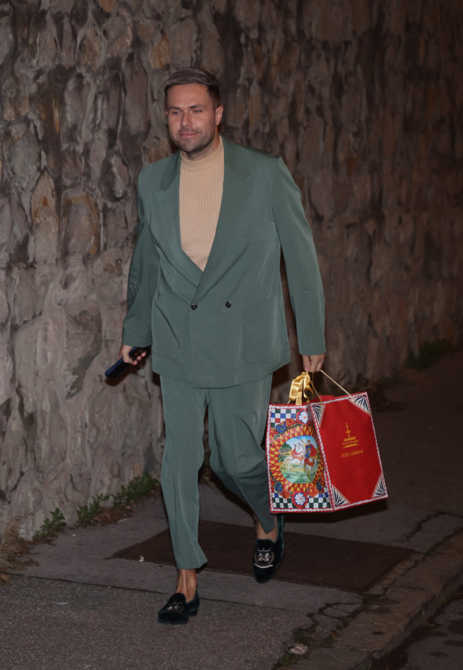 Bili su vidno raspoloženi i vedri, a ruke su im bile pune poklona. Pored kesa sa poklonima oni su nosili i tortu koju je verovatno napravila Bogdanina mama, Danijela.