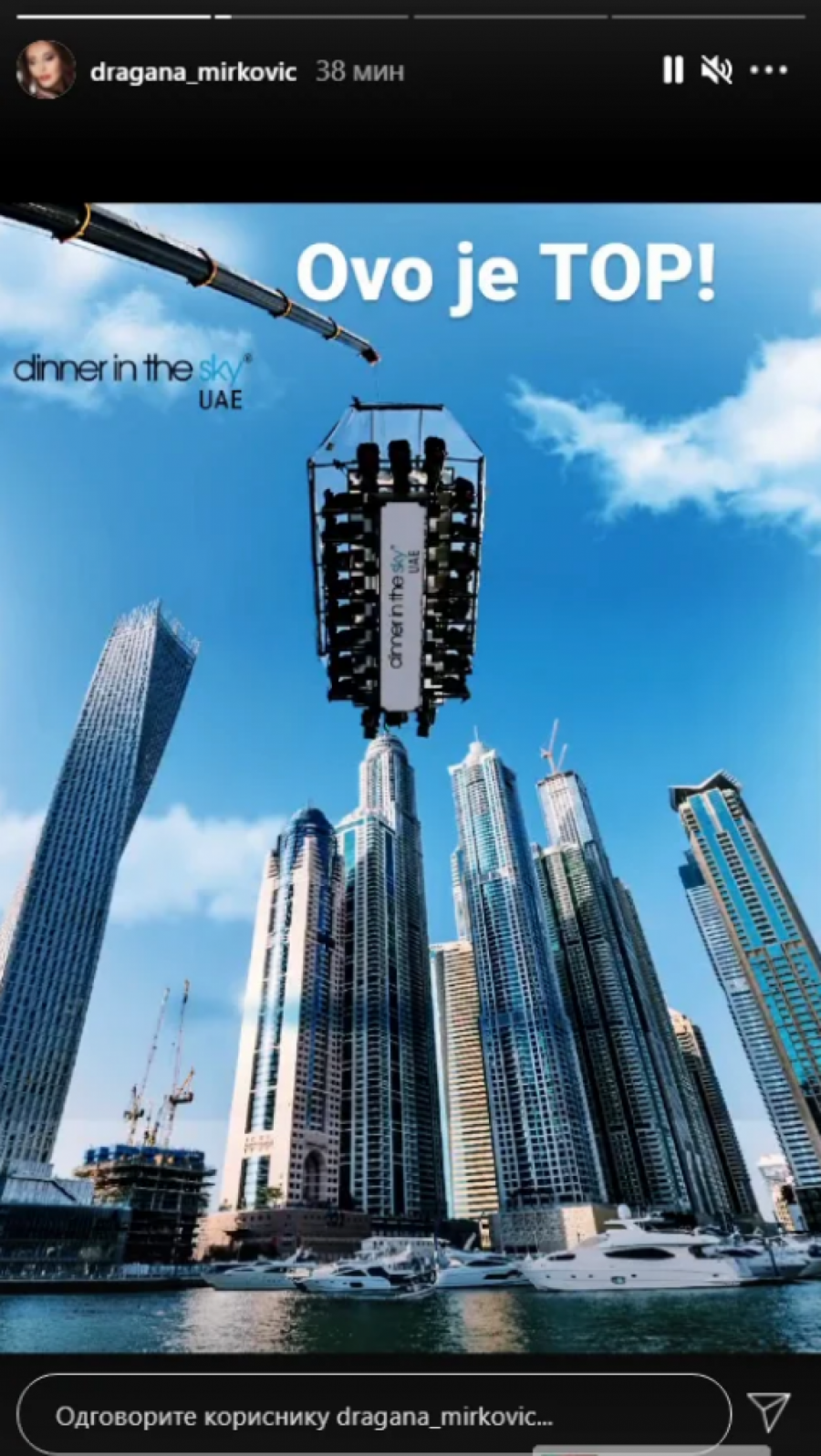 - Ono kad nas Marko i Manuela vode na večeru 50 metara iznad zemlje - napisala je Dragana uz video na Instagramu.