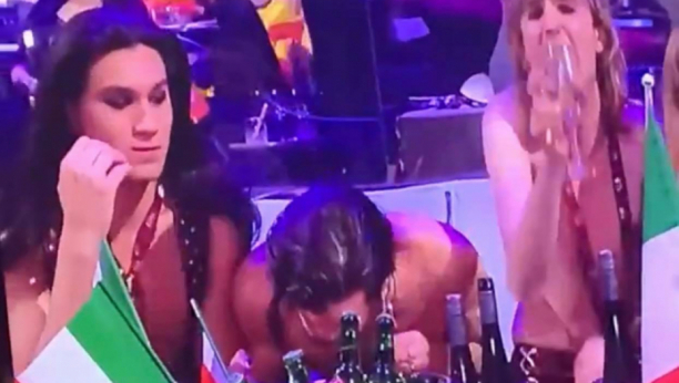 Frotnmen benda Maneskin tokom prenosa je usnimljen dok navodno "šmrče drogu", zbog čega je hitno reagovao menadžment benda i demantovao ove navode, a potom je stiglo i saopštenje organizatora u kojem stoji da pevač Damijano "sklanja staklo sa stola".