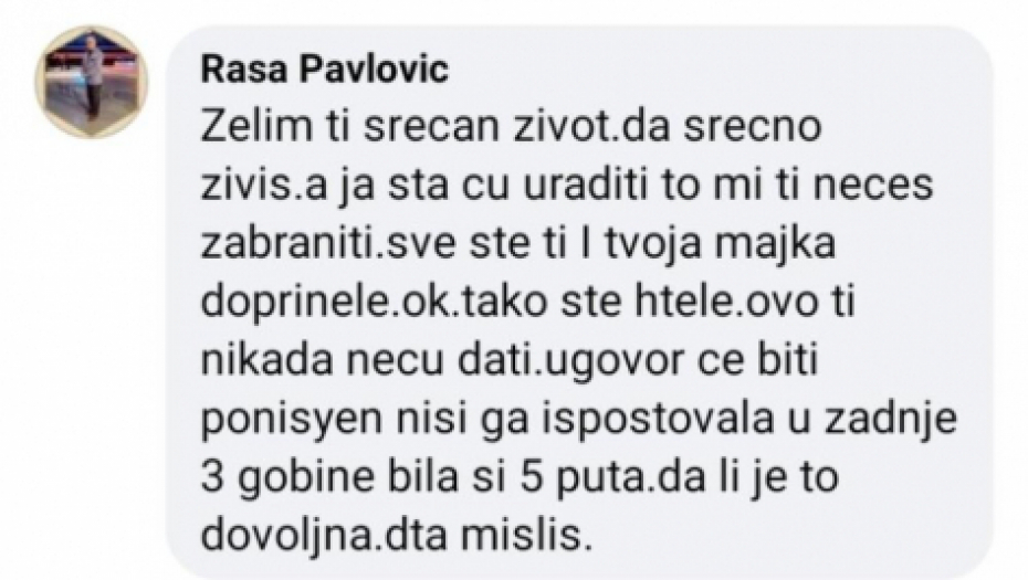 Očigledno da su međuljudski odnosi u porodici Pavlović slični kao među učesnicima u rijaliti programima čim su rešili da se obračunaju preko društvene mreže. Raša je ćerki poručio da raskida ugovor o doživotnom izdržavanju, pa je ona objavila status koji je šokirao pratioce.