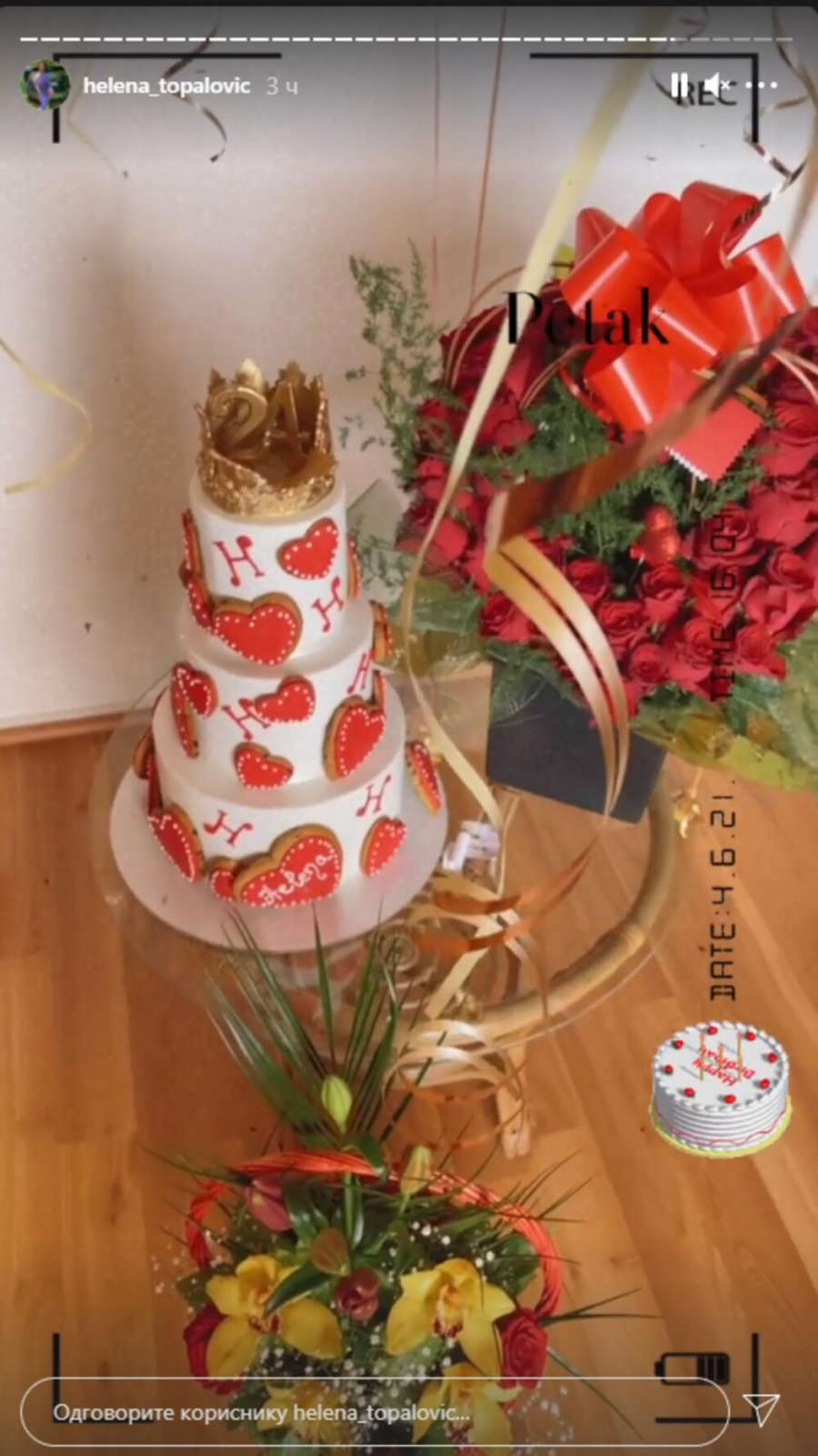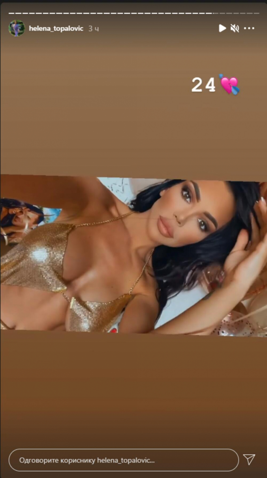 Naime, Helena je na svom profilu objavila nekoliko video snimaka na kojima je pokazala tortu na tri sprata, ali je i snimala sebe u provokativnoj kombinaciji zlatne boje, a njene grudi su bile u prvom planu.