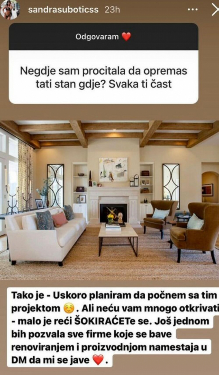 - Je l to Aleksandra Subotić oprema stan ili to pak rade firme za dž? - jedan je od komentara.