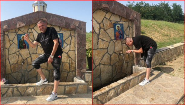 Pevač je iskoristio priliku da popije vode, da se umije i fotografiše sa prijateljima.