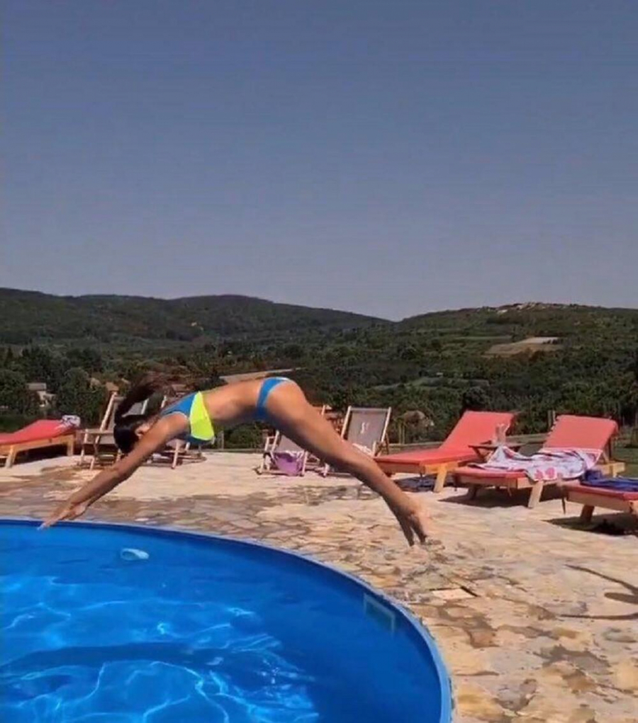 Naime, Sanja je sa svojim pratiocima na Instagramu podelila snimak skoka u bazen, a s obzirom na to da je bila u kupaćem kostimu mnogi su primetili njene zanosne obline.
