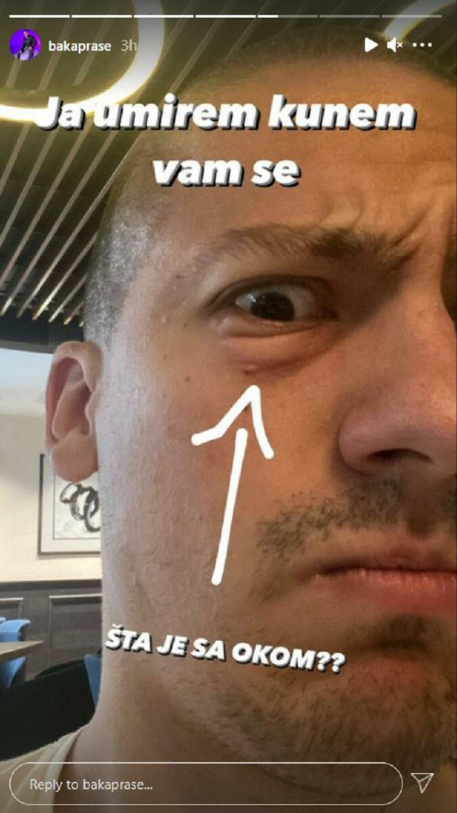 Naime, Baka je objavio fotografije na kojima se vidi otok ispod oka, a mnogi su se zapitali da li je dobio neku očnu infekciju, ili je možda, dobio batine. Ono što je očigledno, jeste da sa njegovim okom nešto nije u redu, i da je jedno manje od drugog.