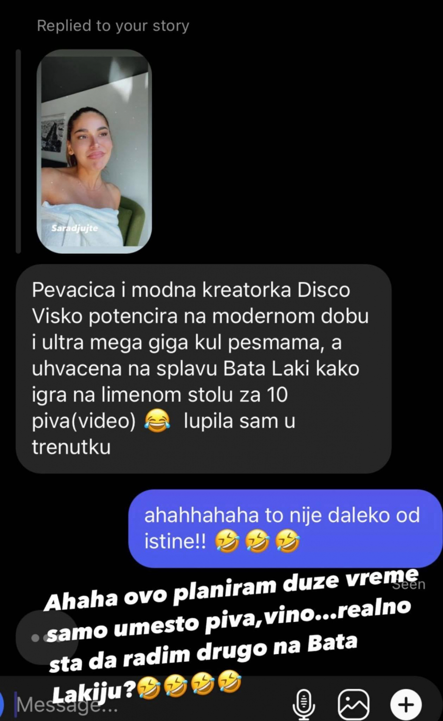Od toga šta će obući za nastup, koje piće da naruči i kakvu pesmu da snimi… Viskovićeva za razliku od većine svojih koleginica ima izuzetno prisan odnos sa pratiocima, pa ih je tokom današnjeg dana pitala da joj osmisle jedan skandal.
