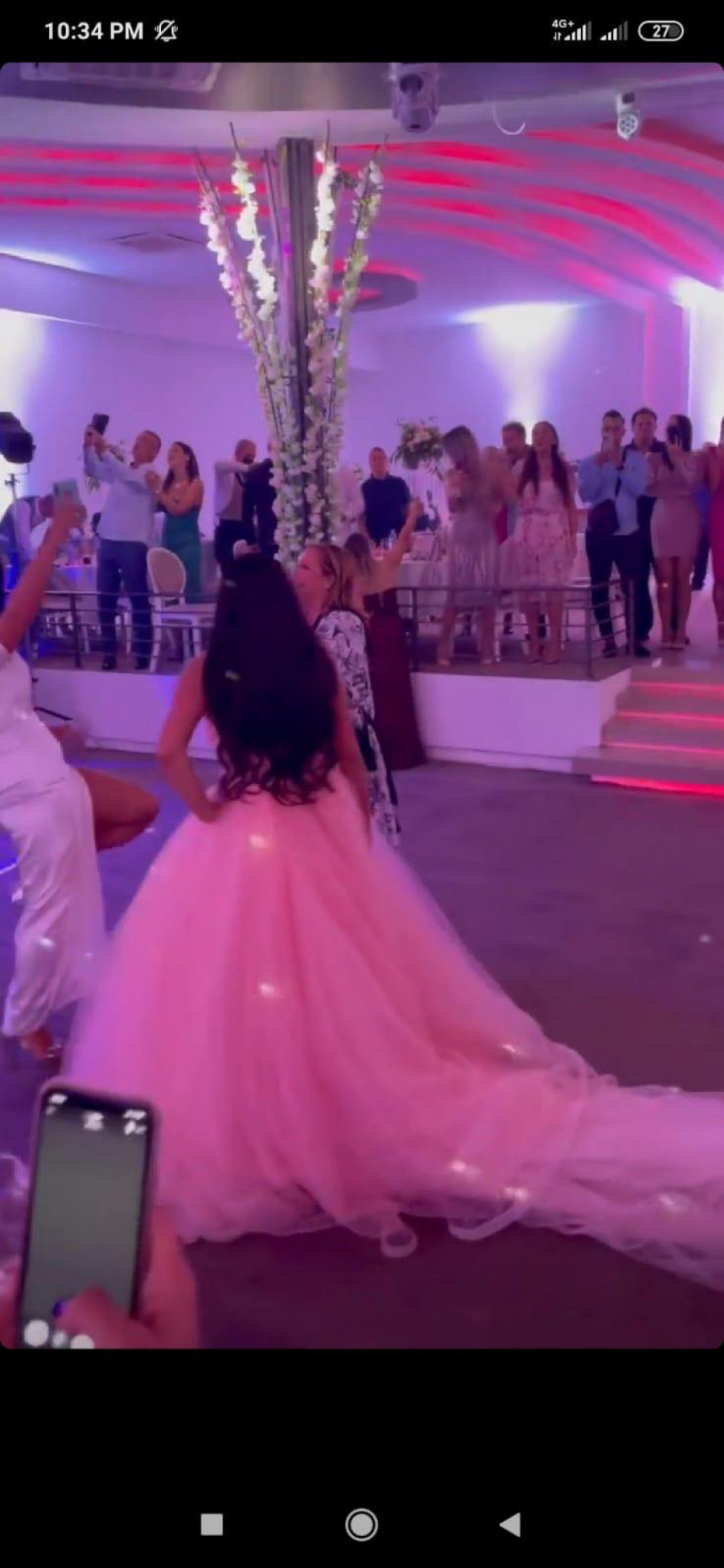 Iako je karakteristično da mlada nosi belu venčanicu, Šakova snajka je izabrala roze u kojoj je blistala. Ona se snimala u kolima sa svojom kumom, a sve vreme nije skidala osmeh sa lica.