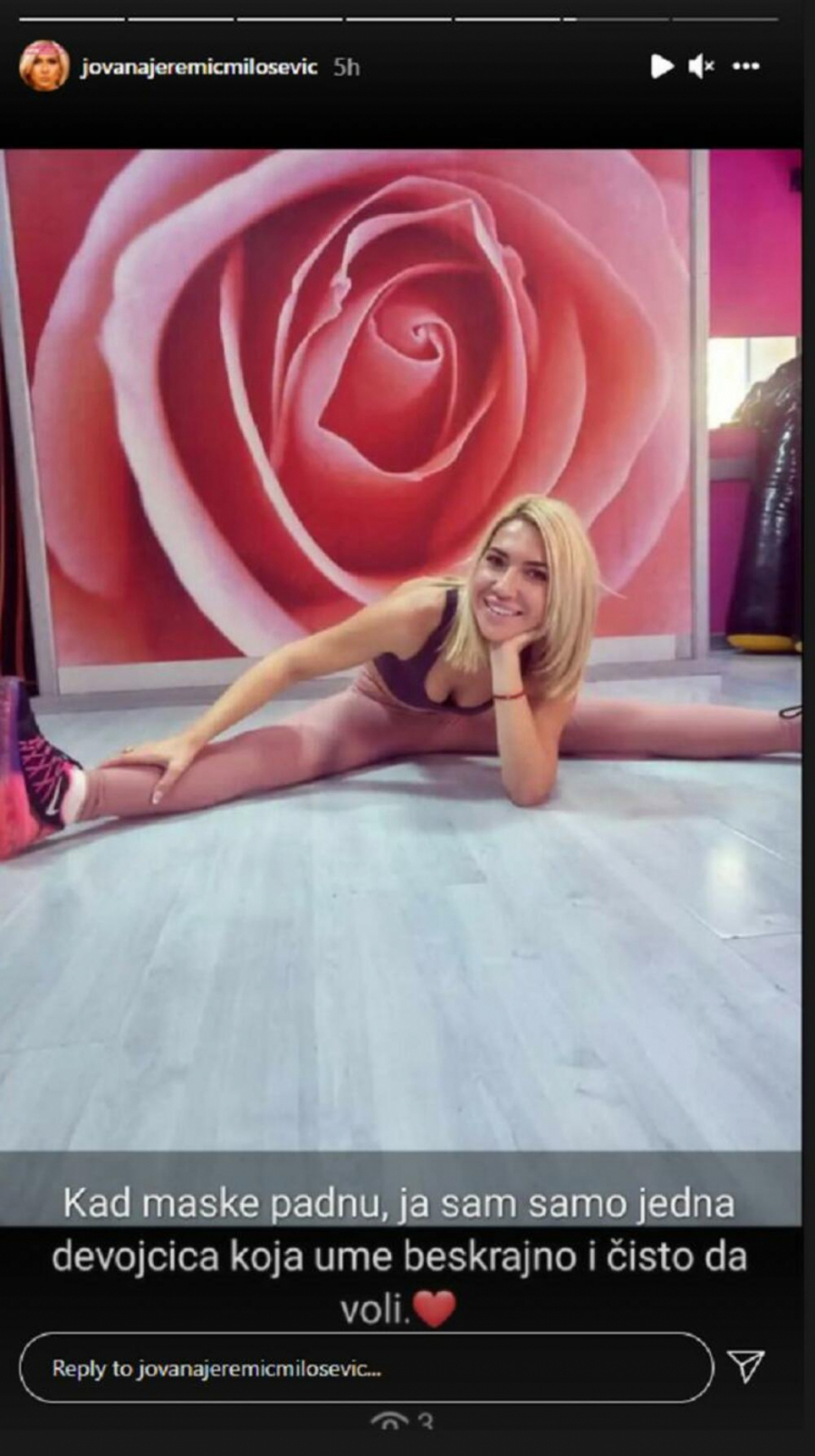 - Kad maske padnu, ja sam samo jedna devojčica koja ume beskrajno i čisto da voli. Sofisticirano zgodna, nigde agresivno, a svuda čvrsto, kompaktno, lepo i baršunasto. 10 godina mi je trebalo da dođem na ovaj nivo psihofizičke kondicije - napisala je Jovana i nastavila: