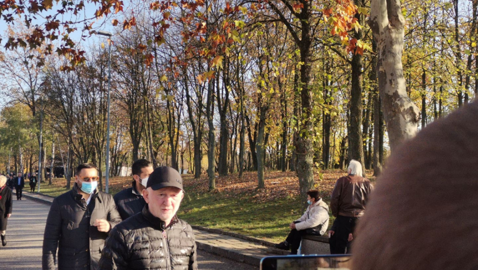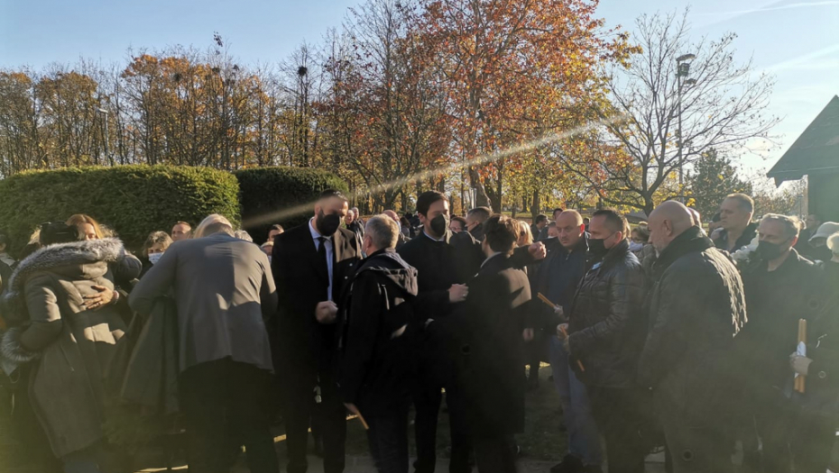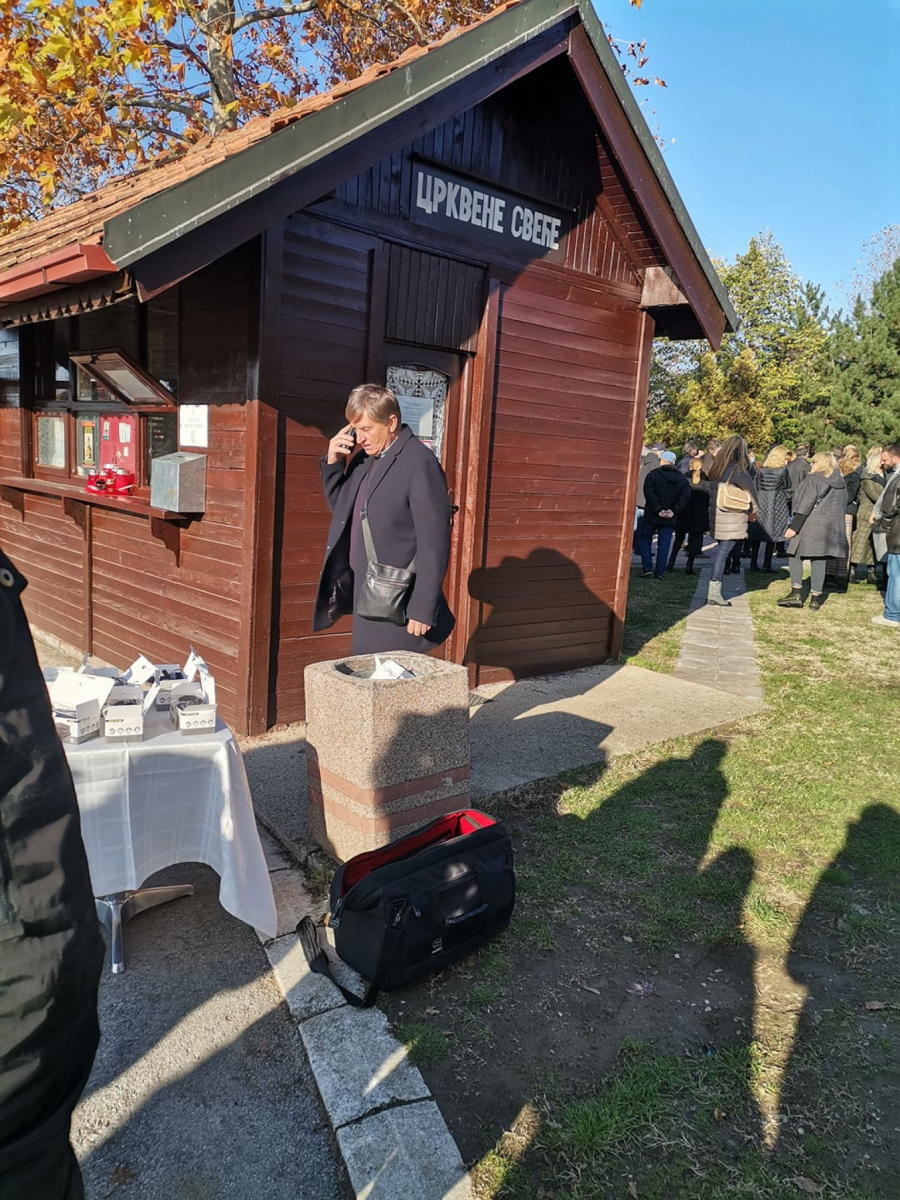 Sveštenici su najpre održali opelo za Marinka Rokvića kom su prisustvovali samo članovi najuže porodice, a sada je 14 sveštenih lica ispred crkve Sv. Apostola Tome na Novom bežanijskom groblju gde počinje služba za sve.