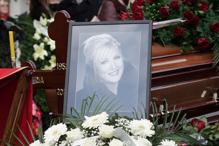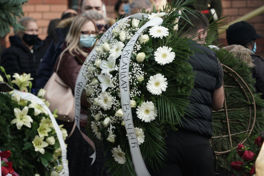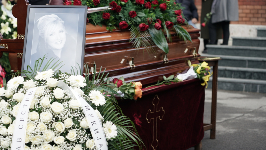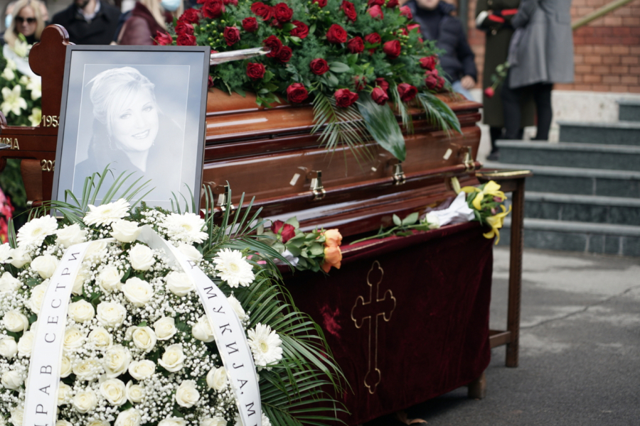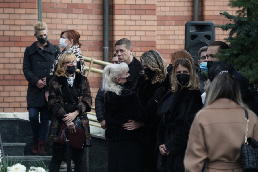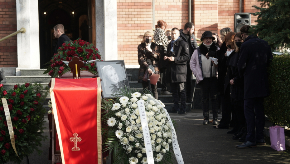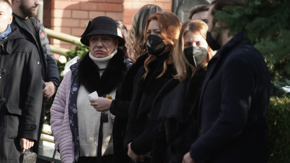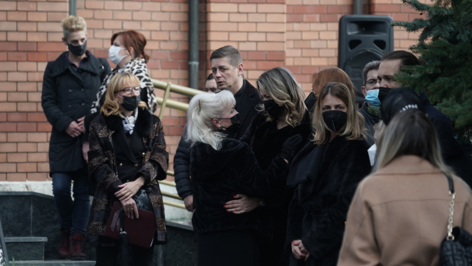 Kovčeg je postavljen ispred crkve Sv. Nikole na Novom groblju, a najbliži su se okupili kako bi je ispratili na većni počinak dok porodica prima saučešće.
