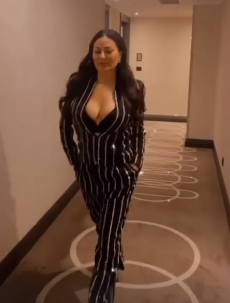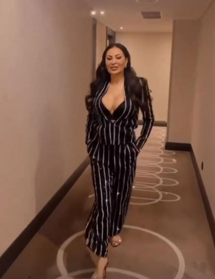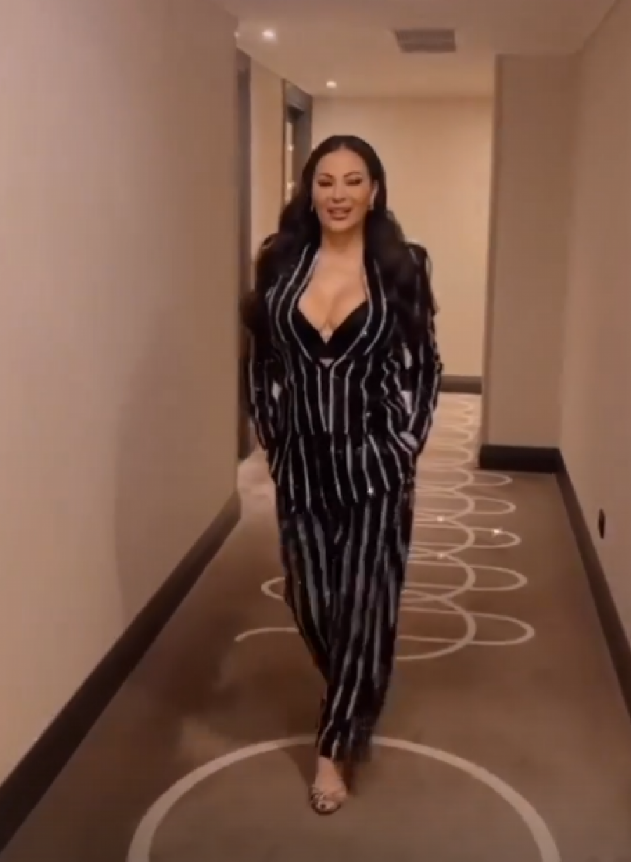 Naime, Ceca se odlučila za crno odelo sa srebrnim detaljima, a veliki dekolte nije izostao. Brushalter je takođe bio u crnoj boji, dok je Ceca pustila dugu kosu da joj pada preko ramena.