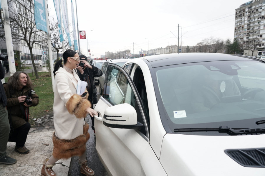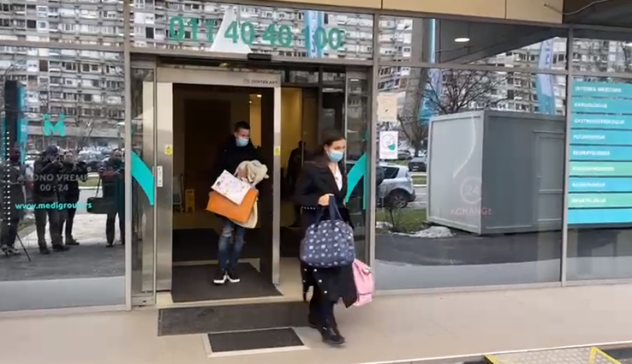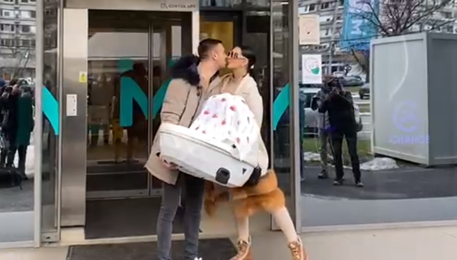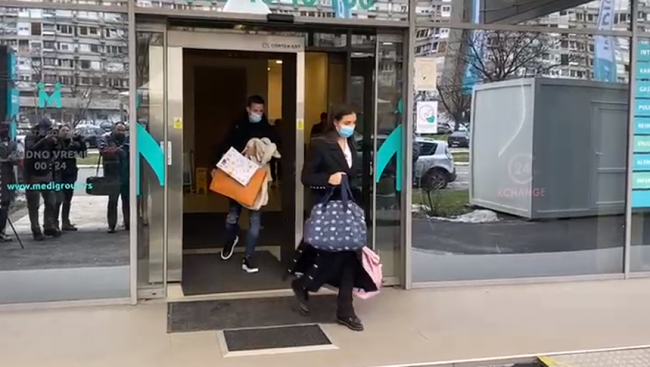 Pevačicin muž, fudbaler Marko Gobeljić, danas je u 09:45 došao u pratnji Kaćine rođene sestre kako bi suprugu i ćerku doveo kući.