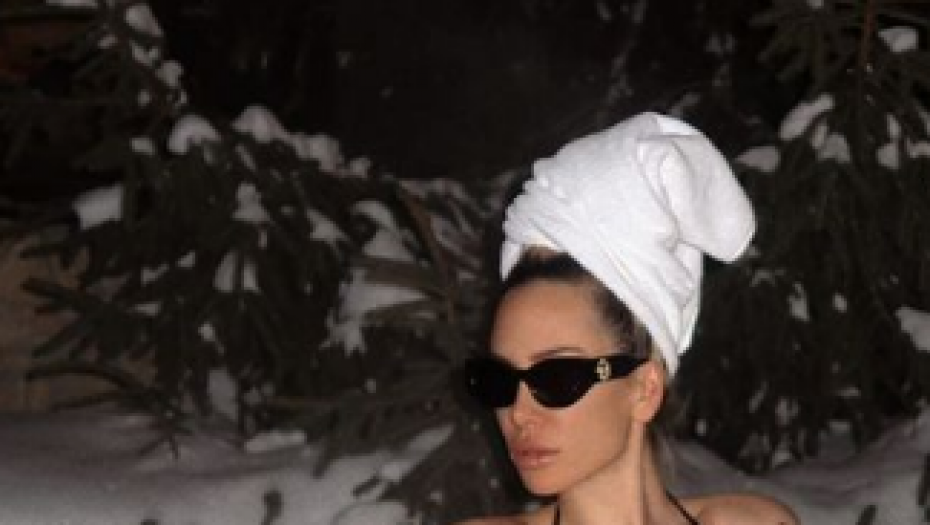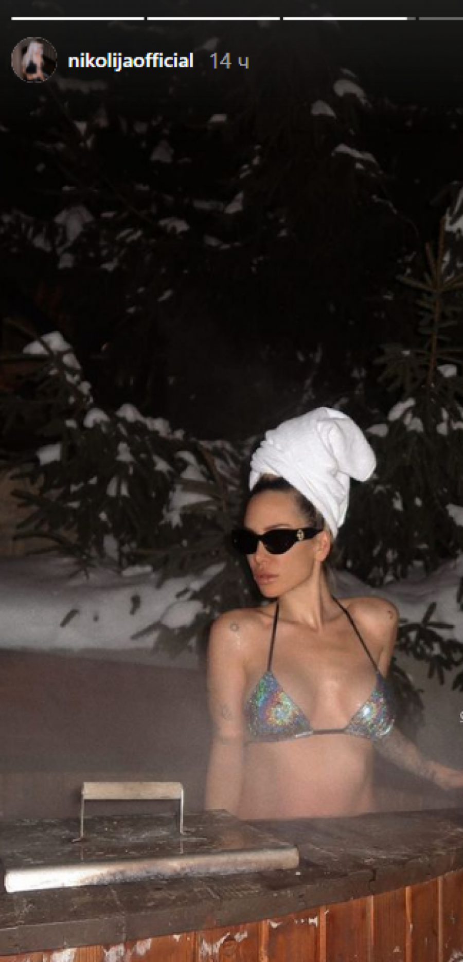 Naime, Nikolija je pozirala u bikiniji dok je ulazila u džakuzi sa peškirom na glavi, a oko nje je sneg.