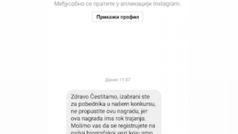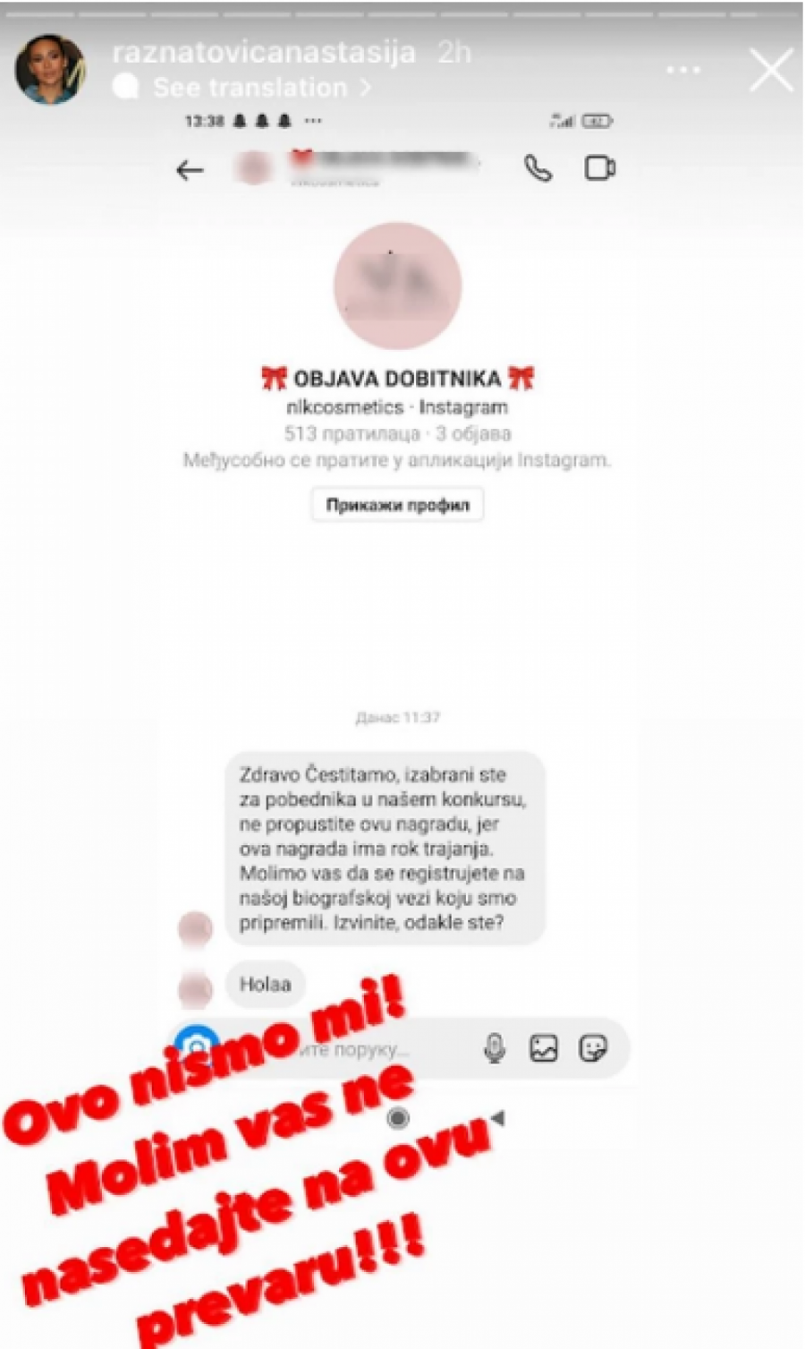 - Ljudi, ovo je prevara! Ko god da je dobio poruku ove sadržine treba da zna da to nije naša oficijalna stranica, već prevara. Ne nasedajte! Ne uplaćujte novac! - napisala je Anastasija.