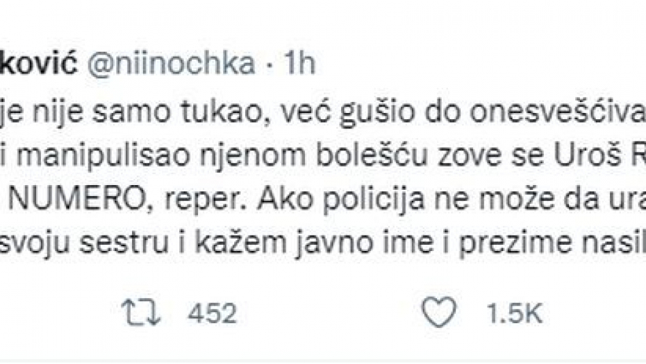 Prvo osnovno javno tužilaštvo u Beogradu podnelo je nadležnom sudu optužni preldog protiv repera Uroša Radivojevića Numera (28), zbog sumnje da je izvršio krivično delo nasilje u porodici.