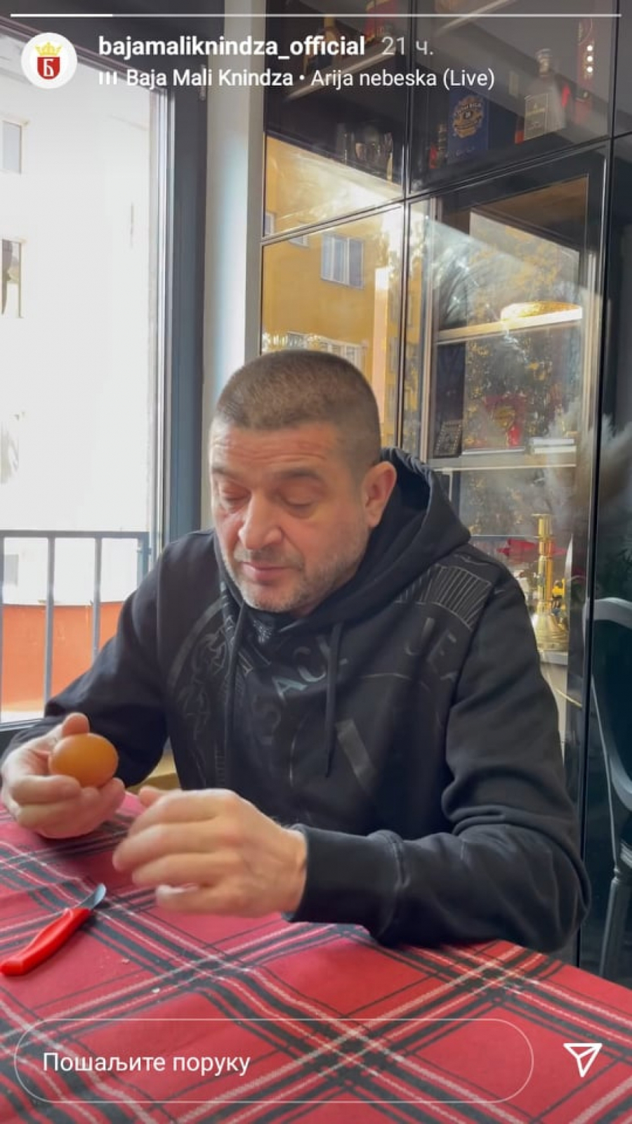 Baja Mali Knindža tako je na Instagramu objavio kako pije jaje, a poznato je da živo jaje ojačava glasne žive.