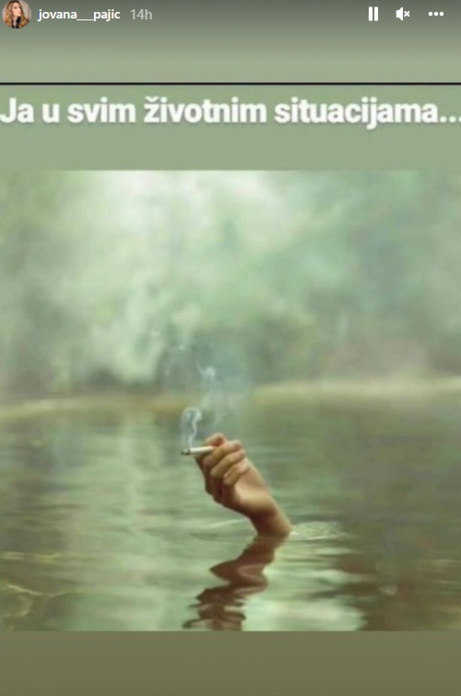 - Ja u svim životnim situacijama - napisala je Pajićeva uz sliku na kojoj vidimo kako se neko davi, ali uporedo i puši cigaretu.