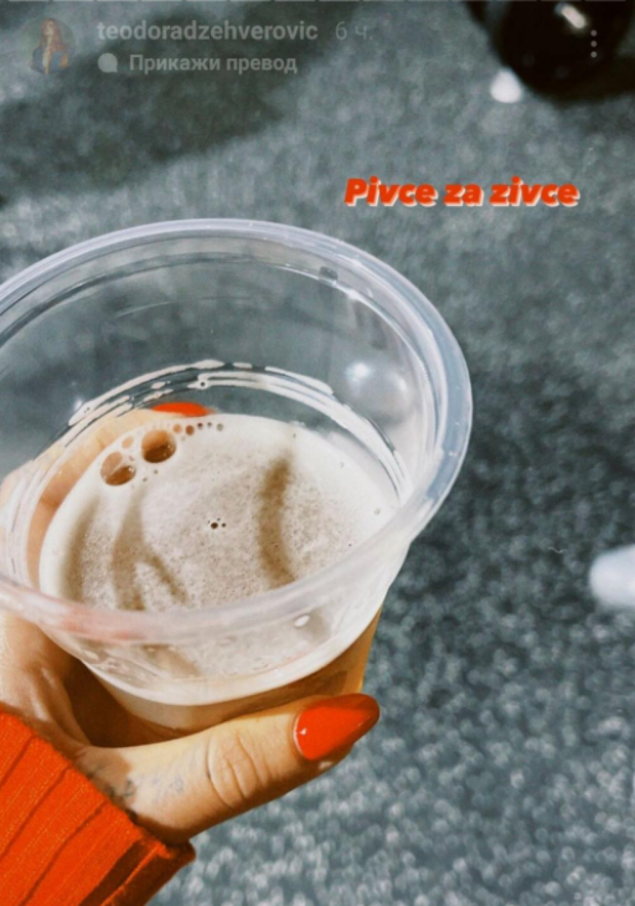 Naime, pevačica je hodala ulicom sa providnom plastičnom čašom u ruci u kojoj se nalazio alkohol. Ona je tokom šetnjice sa dečkom Ninom Čelebićem pijuckala piće koje je nosala sa sobom. Teodora se sve vreme šalila i uz snimak napisala.