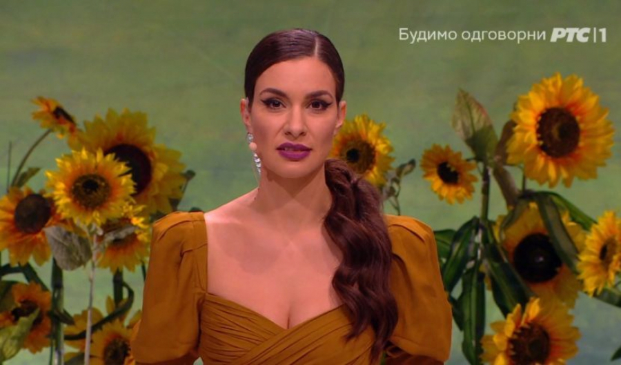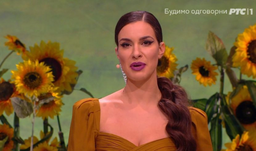 Kreacija je bila veoma elegantna, ali i uska, a minijaturni dekolte, koji je bio dovoljan da istakne i voditeljkinu provokativnost, nikoga nije ostavio ravnodušnim.