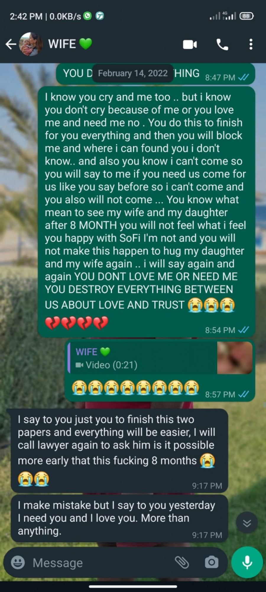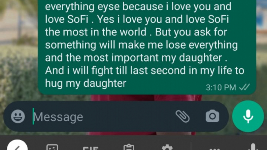 - Počela je da me laže. Rekla mi je da naša ćerka mora da primi vakcinu, a da to ne može da uradi ukoliko ja njoj ne dam potpuno starateljstvo nad Sofi. Ja nisam želeo to da uradim jer bih se na taj način odrekao svog deteta, izgubio bih sva prava na nju. Rekao sam joj da ćemo sve srediti kada se vrati, ali ona to nije želela. Rekla je da se ona više ne vraća u Egipat i da ću morati da dođem u Srbiju ukoliko želim da vidim ćerku. Ja sam bio spreman da promenim život, da dođem da živim u Srbiji. Čak i da mi je rekla da dolazi sa detetom da živi u Beograd i da me čeka dok ne sredim papire i na to bih pristao, ali ovo mi je bilo neprihvatljivo. Govorio sam joj da ima dozvolu da izvede dete samo na 15 dana, da je ovo otmica, ali nije odustajala - pričao nam je Sajed.