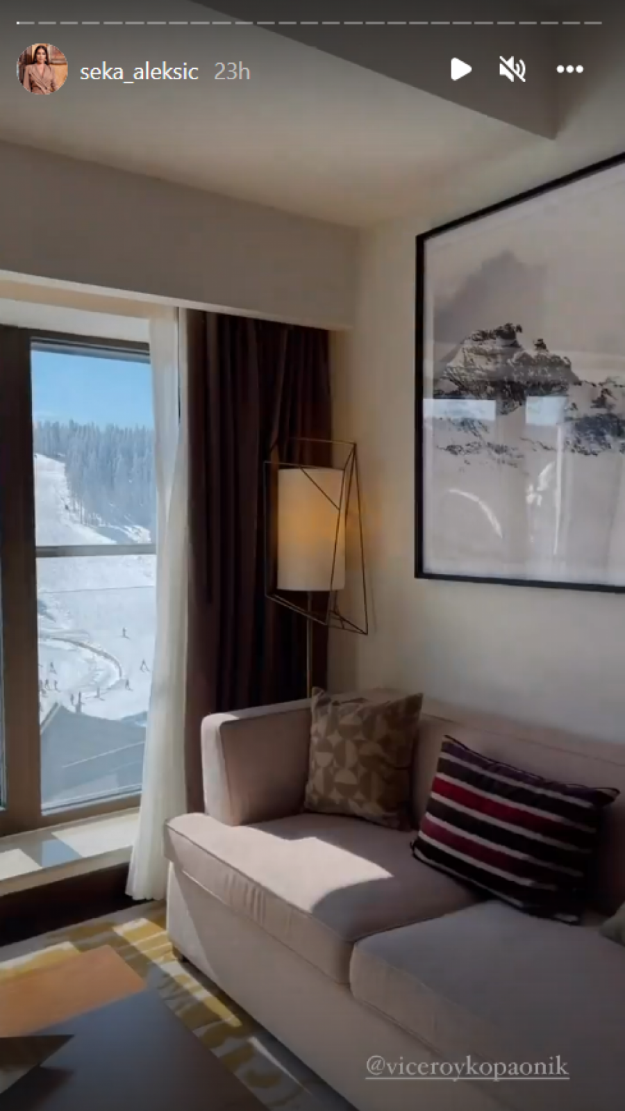 Poznati par uživa u aktivnostima na snegu, a Seka je osim selfija sa žičare, i svog skijaškog umeća sa svojim pratiocima podelila i nekoliko snimaka apartmana u kom se nalazi.