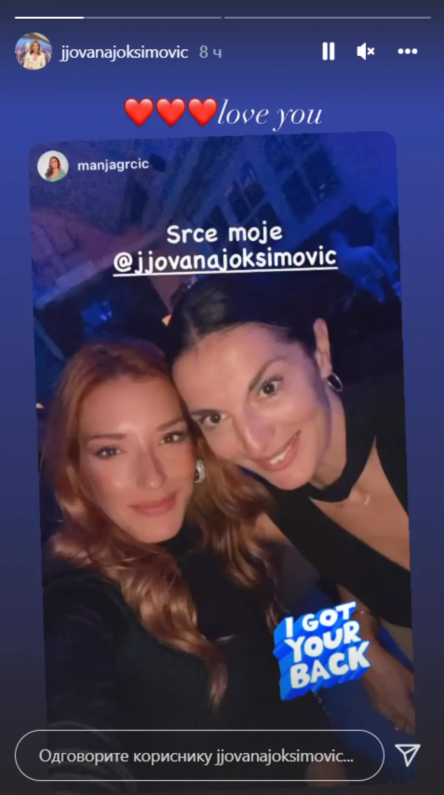 Naime, Joksimovićeva je objavila fotografiju na svom Instagramu u noćnom provodu, a društvo joj je pravila kuma i koleginica Manja Grčić.