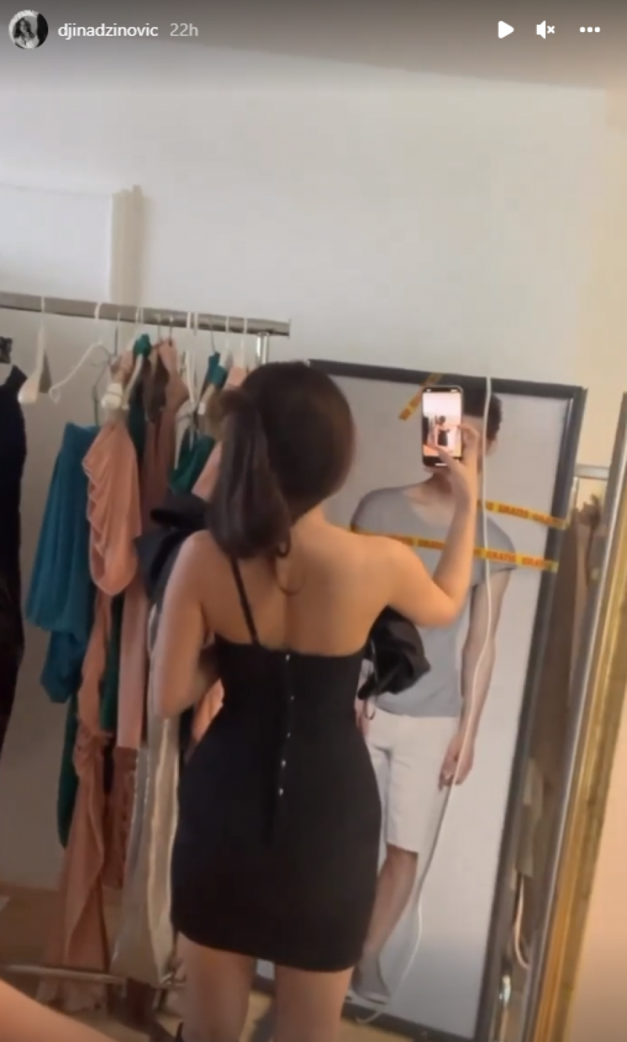 Naime, dok je isprobala haljinu koja je sama po sebi dovoljno već kratka, Džinovićeva je okrenula leđa, a onda su joj gola ramena bila u prvom planu.