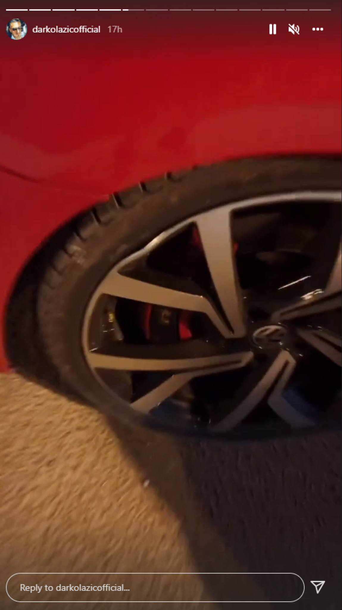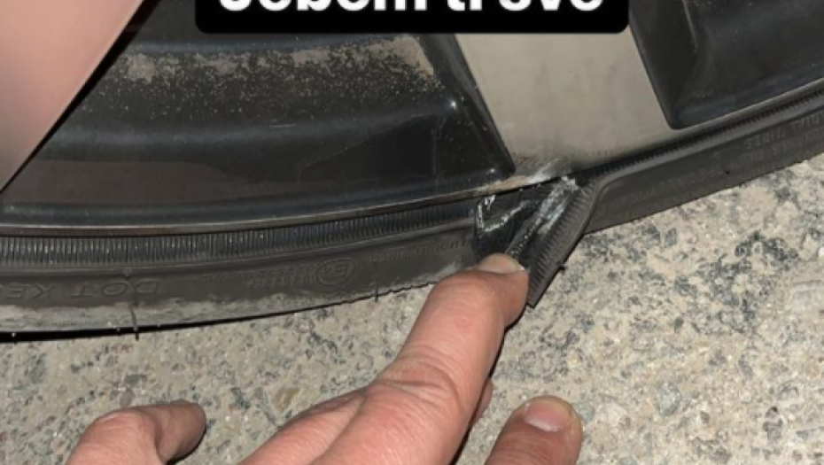 Pevač je sada doživeo peh na putu kada mu se felna iskrivila i pocepala gumu, odnosno obe prednje gume su mu se izbušile.