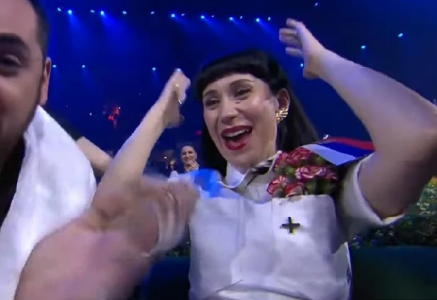 Naime, kako su voditelji izgovorili Srbija, Konstrakta se uhvatila za glavu i vrisnula od sreće i uzbuđenja.