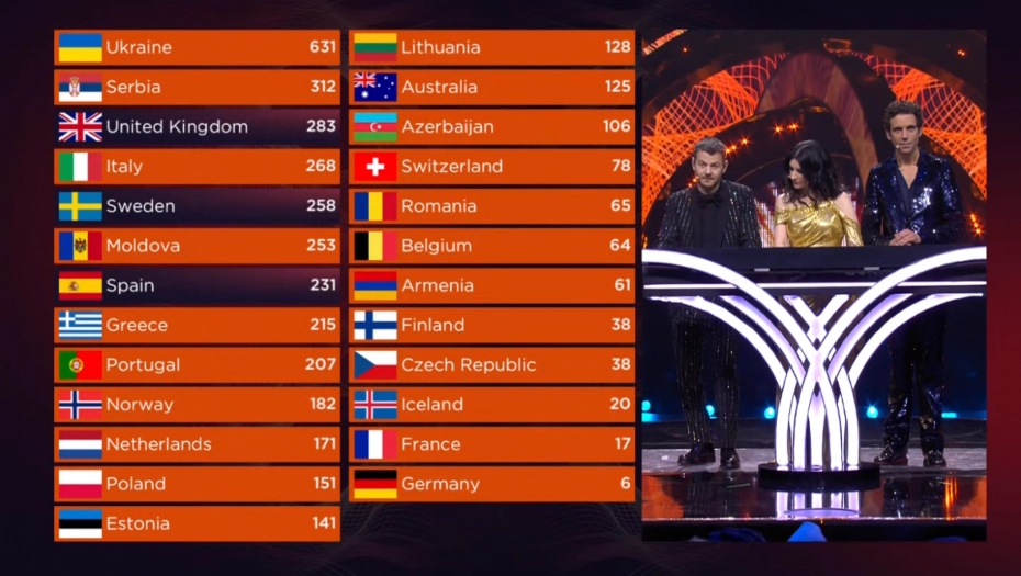 Nakon glasanja Velike Britanije Ukrajina je pobednik Evrovizije 2022, a Srbija se nalazi na fenomenalnoj petoj poziciji.