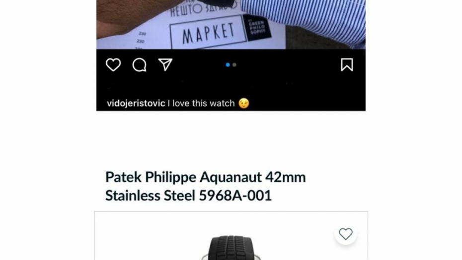 Inače, na Ristovićevom Instagram nalogu mogu se videti fotografije na kojim on pozira sa satovima najluksuznijih svetskih brendova kao što su "roleks", "ričard ril", "patek filip", "odemar pige" (AP) i mnogi drugi. Cene satova koje je on nosio na svojoj ruci i redovno pokazivao svojim pratiocima variraju, a jedan od njih na tržištu danas vredi čak milion dolara. Ovaj AP sat koji je proizveden u samo nekoliko primeraka, pored vrhunskog mehanizma odlikuje i narukvica od kože aligatora, kao i brojačanik oko kog se nalaze dijamanti najfinijeg kvaliteta.