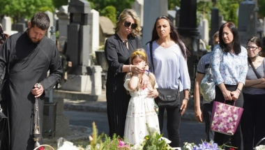 Ana Bekuta je prvo posetila grob Milutina Mrkonjića, tu se isplakala i ostavila cveće, a onda prišla kolegama koje su stajale sa Merominom ćerkom Ljubicom.