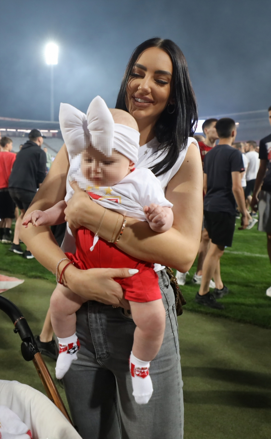 Naime, poznato je da je Kaća vatreni navijač Crvene zvezde, a na ovoj veoma važnoj utakmici je zajedno sa ćerkicom bodrila svog muža i ceo tim.