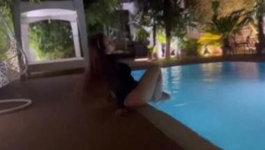 Dakle, pevačica je snimila trenutak uživanja na bazenu koji je okružen palmama i zelenilom. Tik uz bazen smeštena je ljuljaška na kojoj pevačica uživa u trenucima odmora.