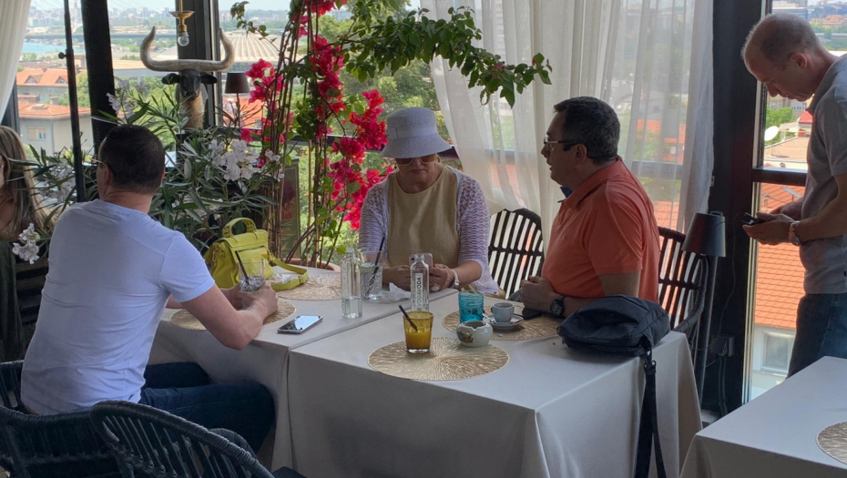 Miliju je društvo pravila supruga, a Viki Miljković se pojavila nešto kasnije, pa je sela pored kume Cece, a tu je bio i Đorđe David koji je sve vreme ćaskao sa Ražnatovićevom.