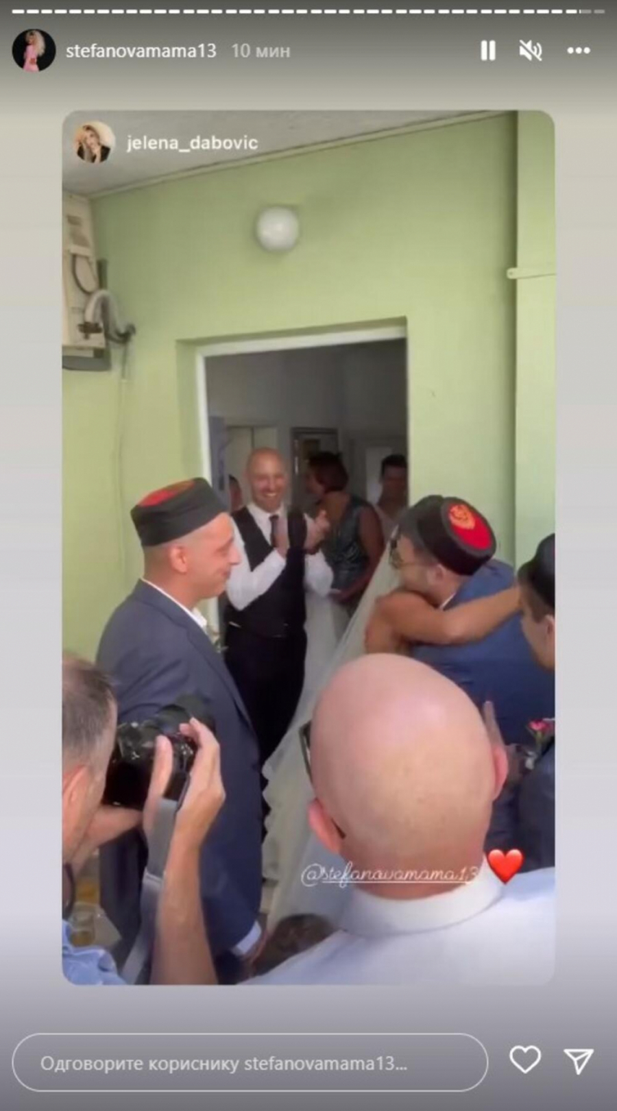 Njena sestra Milica Dabović na društvenoj mreži Instagram podelila je i trenutak kada su svatovi došli po Anu. Pokazala je presrećnu mladu koja je u raskošnoj venčanici bez ramena, a u ruci je držala bidermajer od belih cvetova.